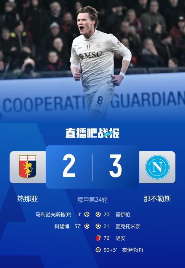 先赛距榜首6分!十人那不勒斯3-2热那亚 霍伊伦双响+绝杀小麦破门