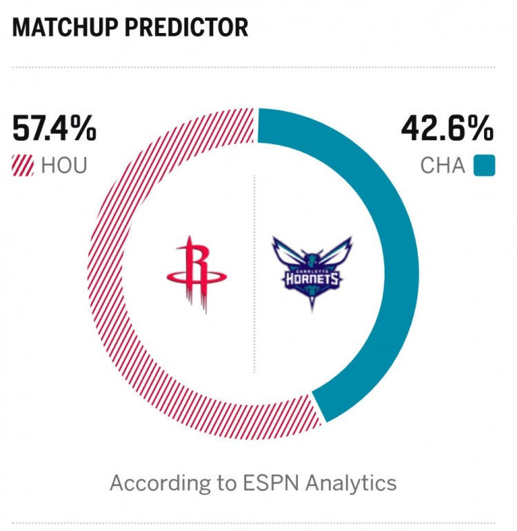 ESPN对本场胜率进行了预测,火箭胜率为57.4%,黄蜂则是42.6%。