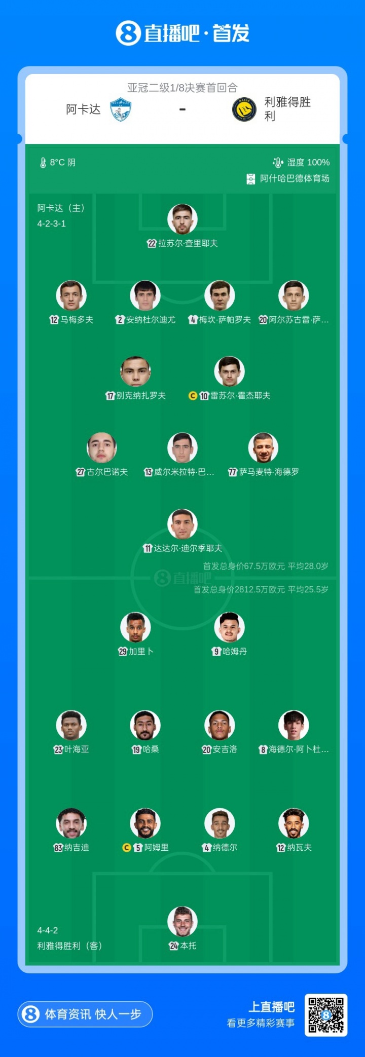 利雅得胜利vs阿卡达首发:C罗、马内、菲利克斯、科曼全部缺席
